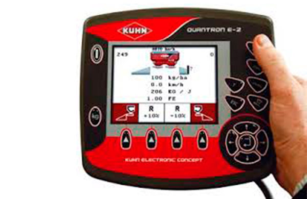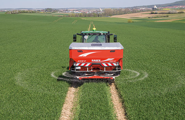 La abonadora AXIS M-EMC (Electonic Mass Control) está equipada de serie con un sistema de ajuste de la dosis de abono en cada disco de distribución. La posición de la válvula de dosificación se corrige constantemente en función del par motor que se mide en cada disco de distribución.